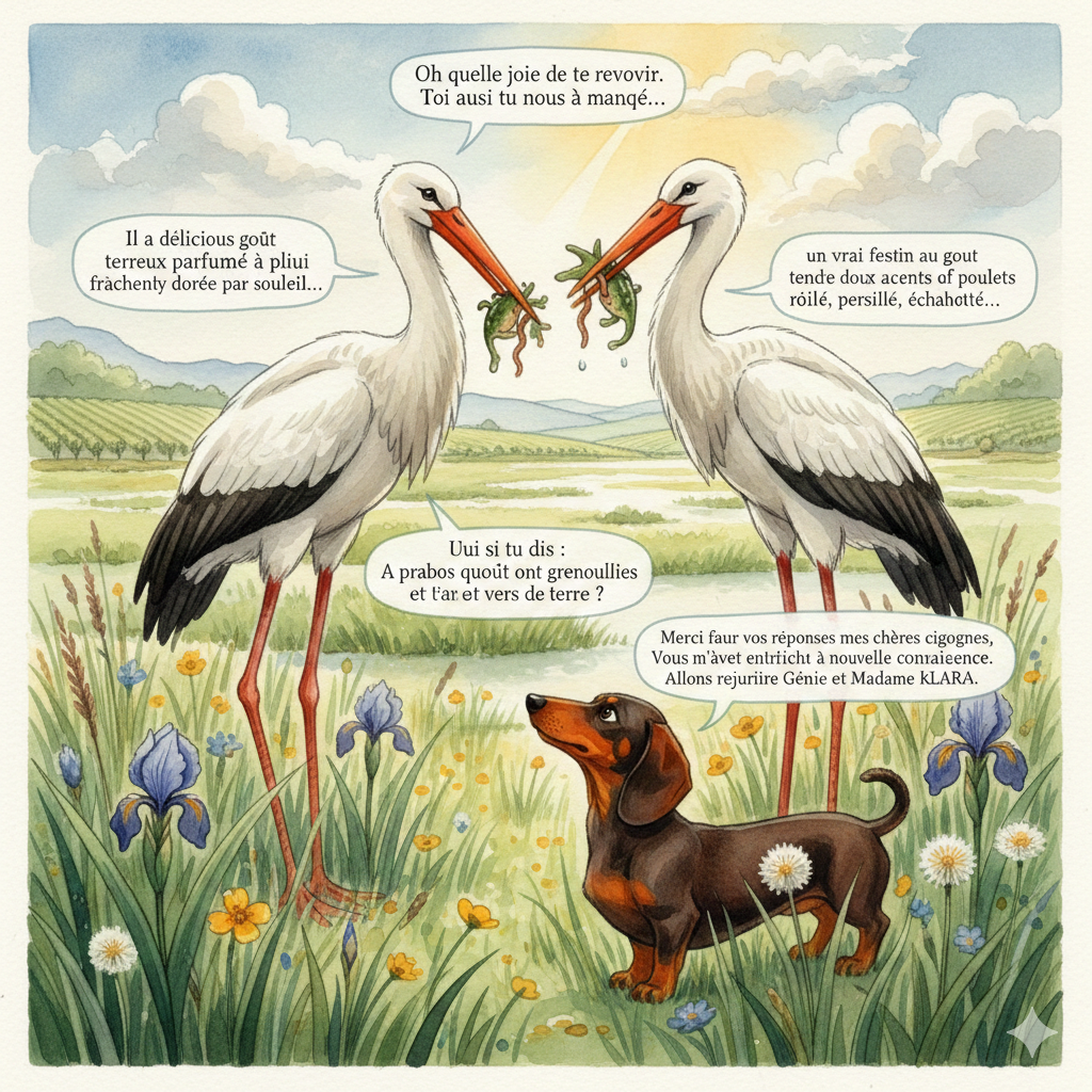 — Cigo… arrête donc tes acrobaties. Tu perds des plumes, tu t’abîmes les ailes… et surtout, mon cœur, tu es une cigogne. Pas un motor‑home. De plus, tu te montres stupide. Pour une cigogne, cela ne se fait vraiment pas. C’est indigne. Et regarde autour de toi : tous ces humains sont en train de rire et de te filmer… Ils vont te poster sur Facebook, Instagram, même sur Twix. Cigo écarquilla les yeux.