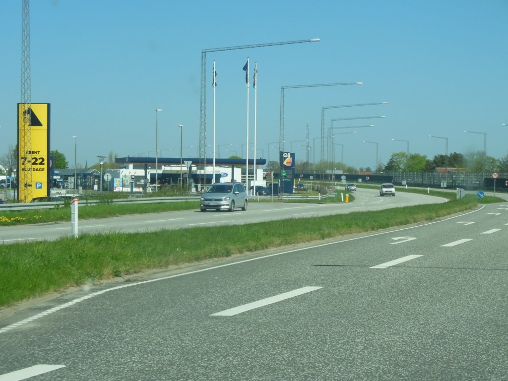 Le beau temps nous accompagne depuis le départ. Cela nous surprend un peu : il fait chaud à l’intérieur du motor-home… 29°C ce jour-là. À Slagelse, nous passons notre dernière nuit au Danemark, dans une ferme d’agriculteurs céréaliers. Les propriétaires ne sont guère aimables, mais la longère est belle, avec une petite basse-cour. Un vrai petit bijou que cette ferme.