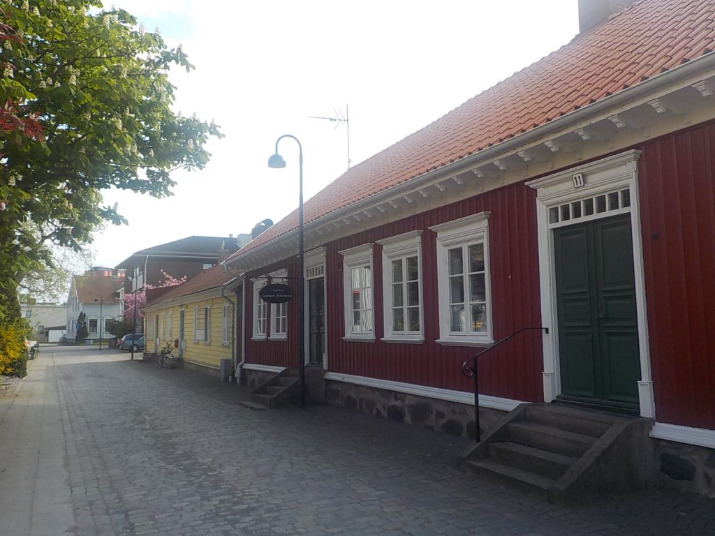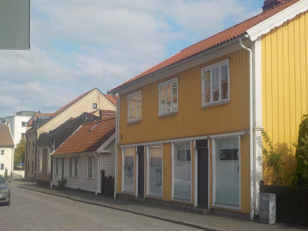 Nous arrivons à Falkenberg à 15 h 30. Une ville de bord de mer réputée pour ses maisons en bois colorées des XVIIIe et XIXe siècles (Gamla Stan) et sa pêche au saumon dans la rivière Ätran, une tradition qui attire les pêcheurs du monde entier depuis l’époque des Vikings.