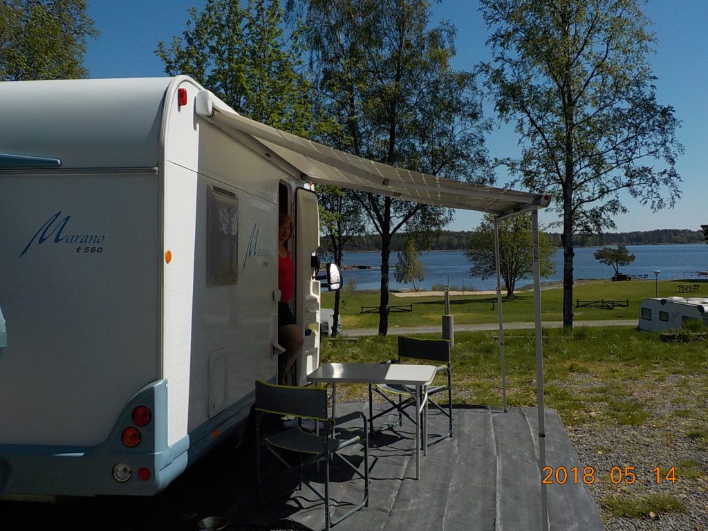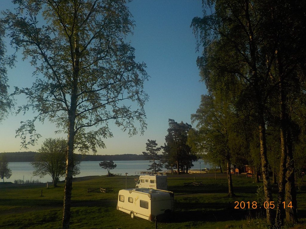 14 mai 2018, nous nous rendons à Sâffle (Sud du lac de Vânersborg, où nous faisons une pause le temps de déjeuner. C’est à 14h que nous poursuivons notre route, et cherchons un camping où il nous sera possible de passer la nuit, et faire nos lessives. Les campings sont très nombreux le long du lac, cela nous surprend dans un pays où il ne doit pas faire trop chaude